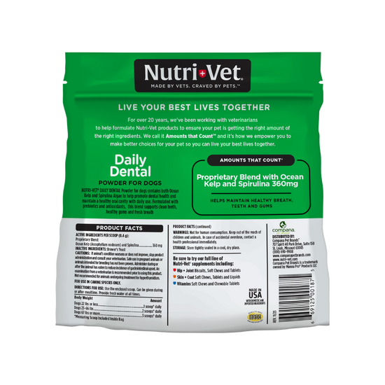 Use the enclosed scoop to provide accurate measurements. The dental powder can be given to your dog during mealtime. Make sure to always provide fresh water when using this powder.